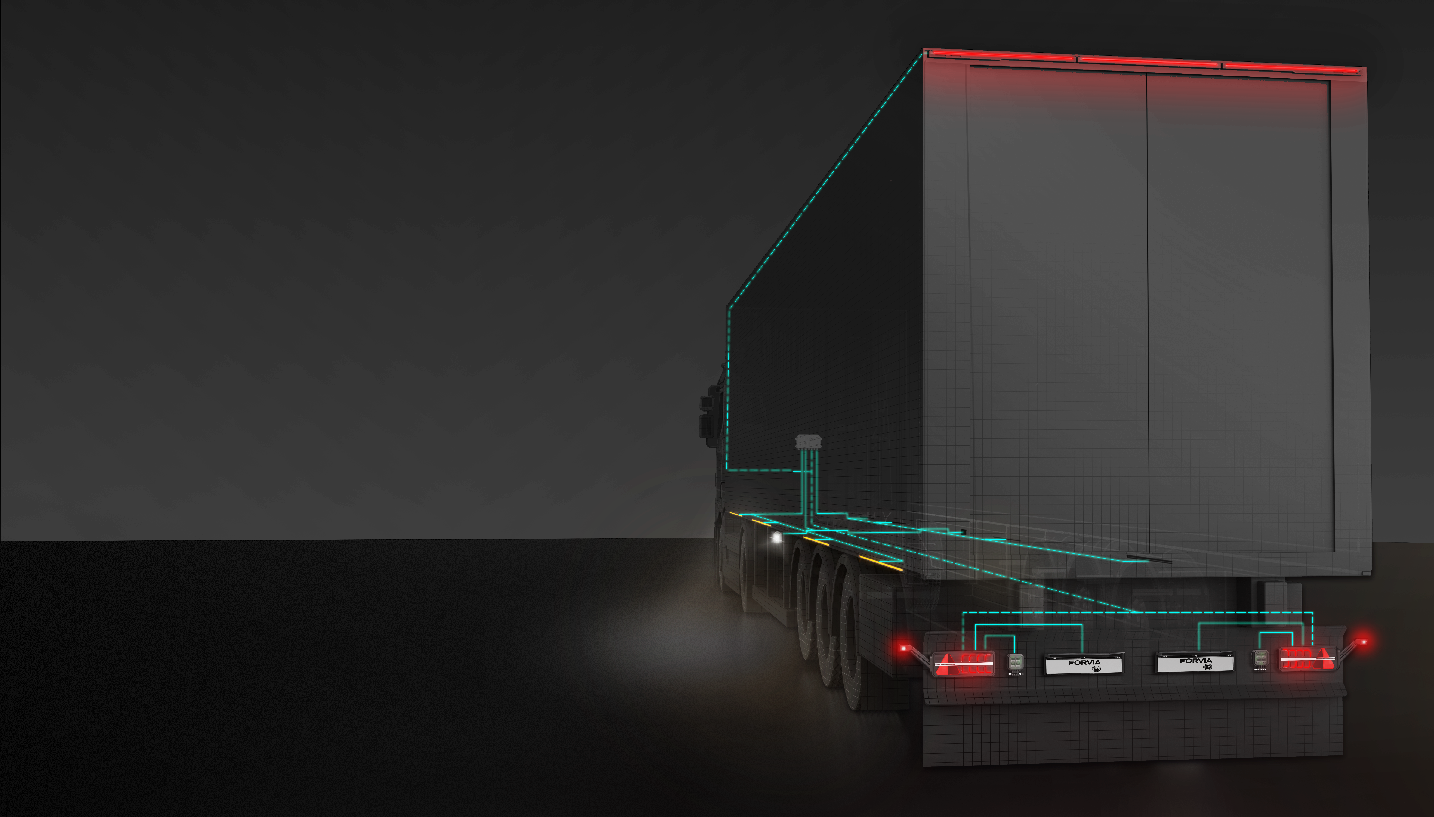 FORVIA HELLA will also introduce a new Future Trailer Lighting System. The digitalization of the lighting system reduces cabling, saving material (especially copper), and lowering weight and CO2 footprint. It also enables new functionalities, such as automated lighting functions and monitoring the status of lighting modules.