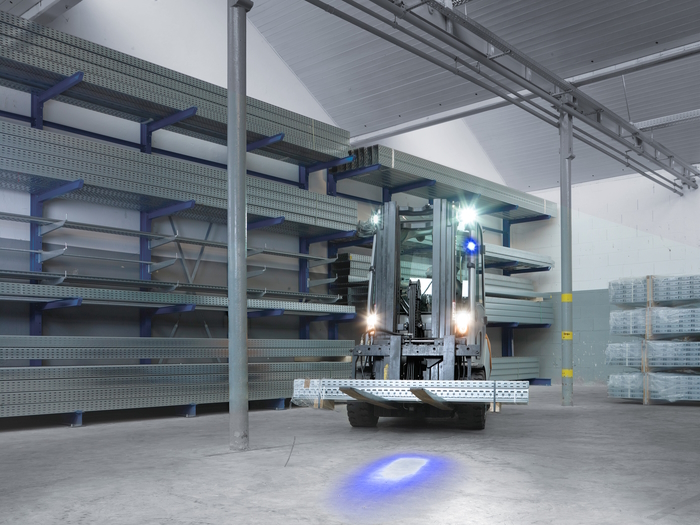 Another HELLA highlight at LogiMAT 2023 is the innovative VISIOTECH lighting technology solution. With VISIOTECH projection technology, communication by light is possible. For example, warning symbols for marking danger zones can be projected onto surfaces, which increases safety and comfort in everyday work. Visitors can experience the innovative VISIOTECH technology live at the HELLA stand, among other things on the HELLA Module 50 LED Spot. For example, the warning light is able to project a circular warning spot onto the ground or the working area. Thus, people are warned of approaching vehicles in good time and occupational safety is significantly increased.